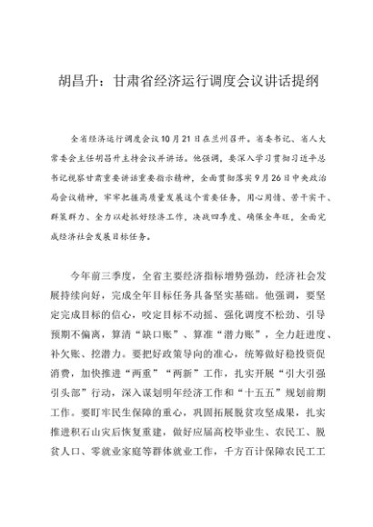 / 领导讲话:20241021胡昌升:甘肃省经济运行调度会议讲话提纲