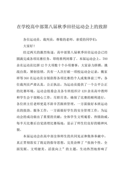 / 领导讲话:20241020在学校高中部第八届秋季田径运动会上的致辞
