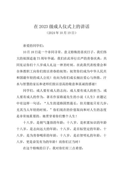 / 领导讲话:20241019在2023级成人仪式上的讲话