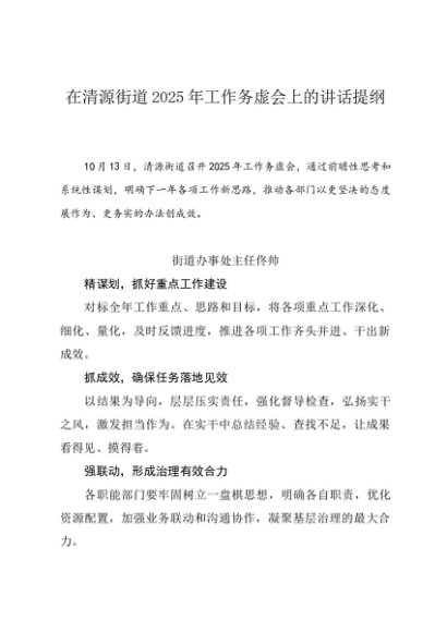 / 领导讲话:20241013在清源街道2025年工作务虚会上的讲话提纲