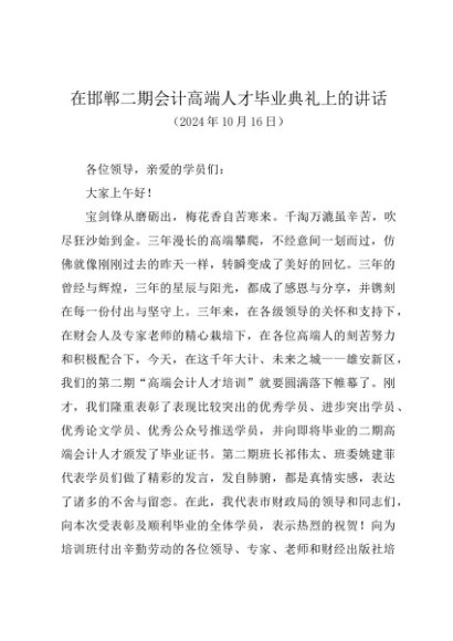 / 领导讲话:20241016在邯郸二期会计高端人才毕业典礼上的讲话