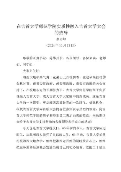 / 领导讲话:20241013在吉首大学师范学院实质性融入吉首大学大会的致辞