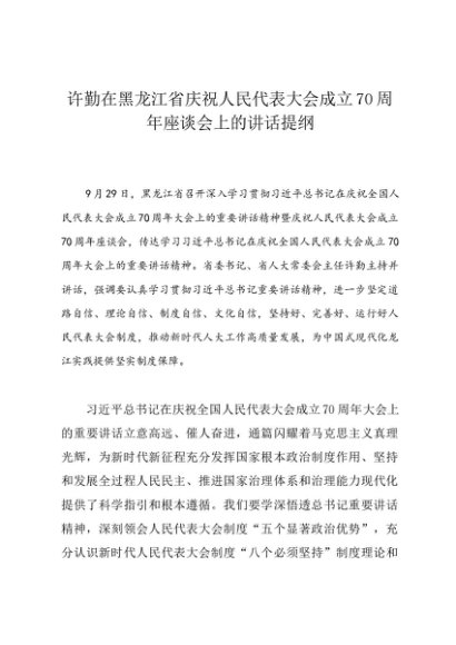 / 领导讲话:20240929许勤在黑龙江省庆祝人民代表大会成立70周年座谈会上的讲话提纲