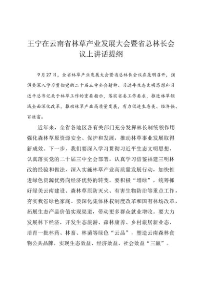 / 领导讲话:20240927王宁在云南省林草产业发展大会暨省总林长会议上讲话提纲