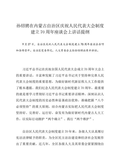 领导讲话:20240927孙绍骋在内蒙古自治区庆祝人民代表大会制度建立70周年座谈会上讲话提纲