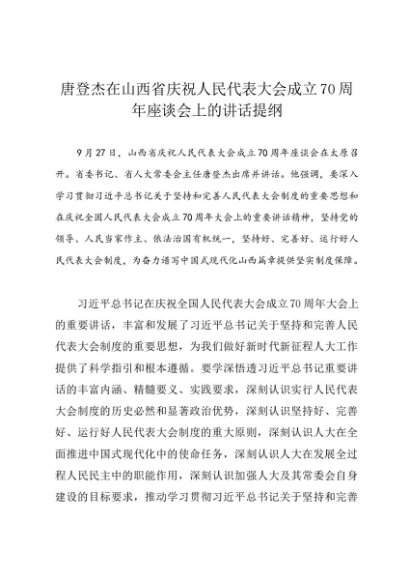 / 领导讲话:20240927唐登杰在山西省庆祝人民代表大会成立70周年座谈会上的讲话提纲