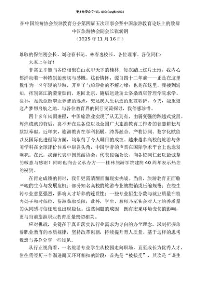 / 领导讲话:20251130中国旅游协会副会长张润钢:在中国旅游协会旅游教育分会第四届五次理事会暨中国旅游教育论坛上的致辞