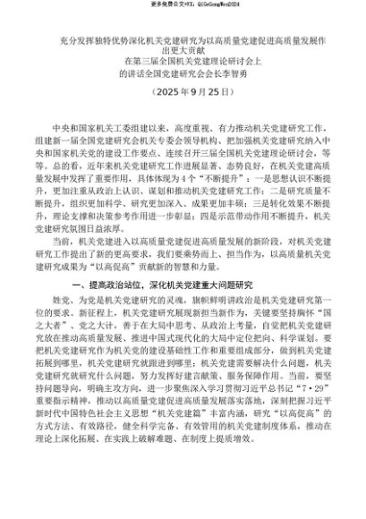 / 领导讲话:20250925在第三届全国机关党建理论研讨会上的讲话——全国党建研究会会长李智勇