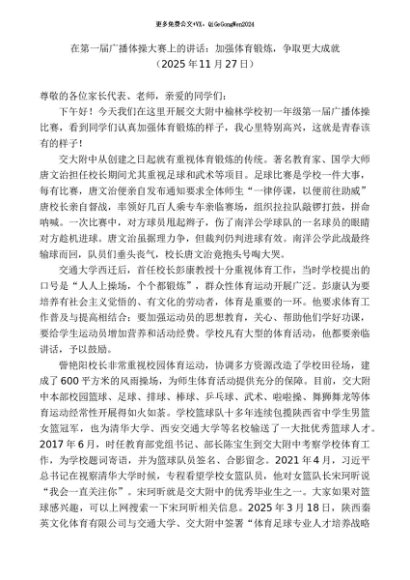 / 领导讲话:20251130在第一届广播体操大赛上的讲话