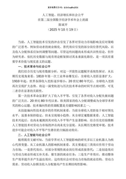 / 领导讲话:20251130在第二届全国数字经济学术年会上的演:人工智能、经济增长和社会公平