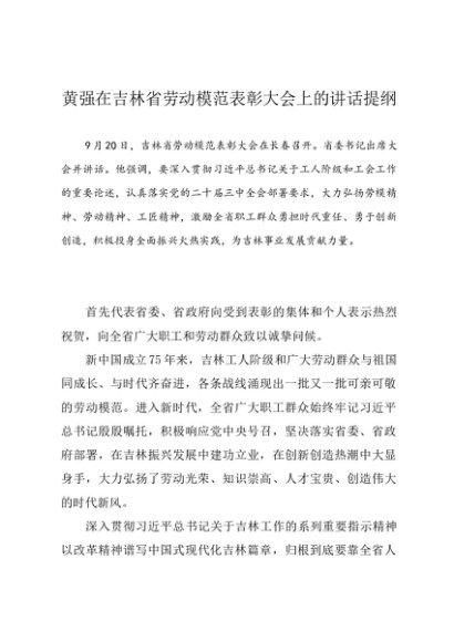 / 领导讲话:20240920黄强在吉林省劳动模范表彰大会上的讲话提纲