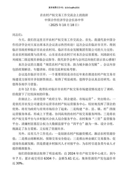 / 领导讲话:20251130中国合作经济学会会长孙中华:在农村产权交易工作交流会上的致辞