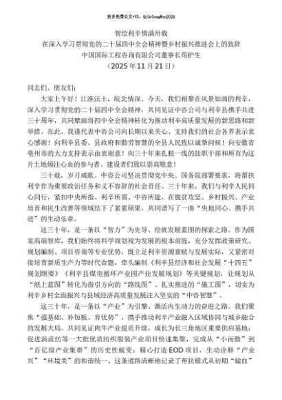 / 领导讲话:20251130在深入学习贯彻党的二十届四中全会精神暨乡村振兴推进会上的致辞:智绘利辛情满卅载