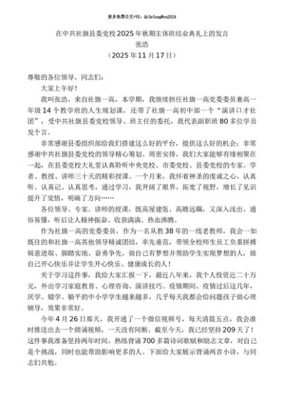 / 领导讲话:20251130张浩:在中共社旗县委党校2025年秋期主体班结业典礼上的发言