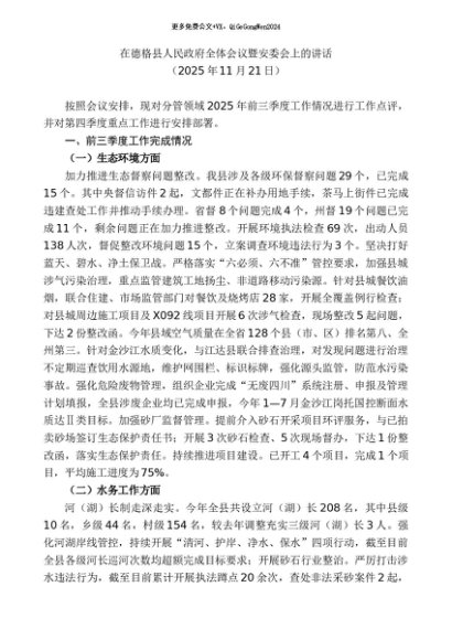 / 领导讲话:20251130在德格县人民政府全体会议暨安委会上的讲话