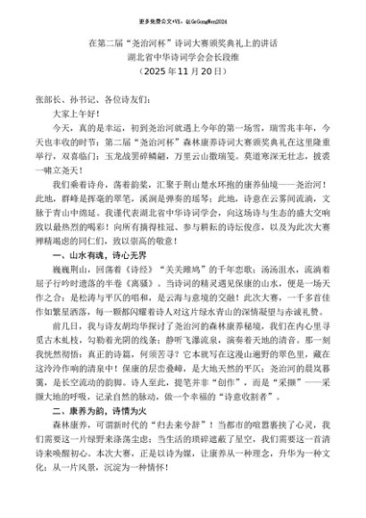/ 领导讲话:20251130湖北省中华诗词学会会长段维:在第二届“尧治河杯”诗词大赛颁奖典礼上的讲话