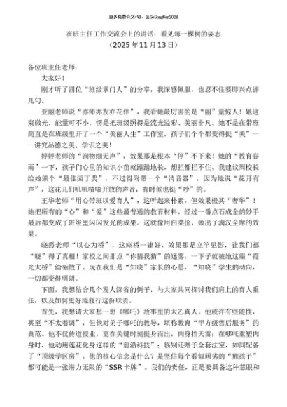 / 领导讲话:20251130在班主任工作交流会上的讲话