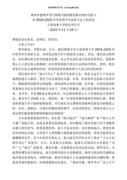 / 领导讲话:20251130在2024-2025学年优秀学生表彰大会上的讲话:兼容并蓄博学笃行做堪当强国建设重任的时代新人