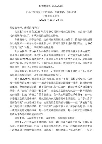 / 领导讲话:20251130年级主任王光英:在高三誓师大会上的演讲:冬藏蓄劲,百日破锋