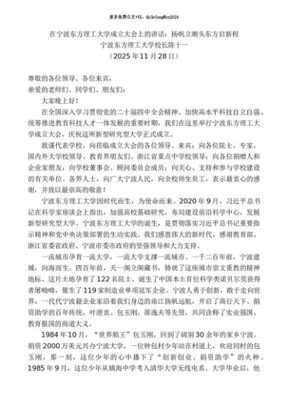 / 领导讲话:20251130宁波东方理工大学校长陈十一:在宁波东方理工大学成立大会上的讲话:扬帆立潮头东方启新程