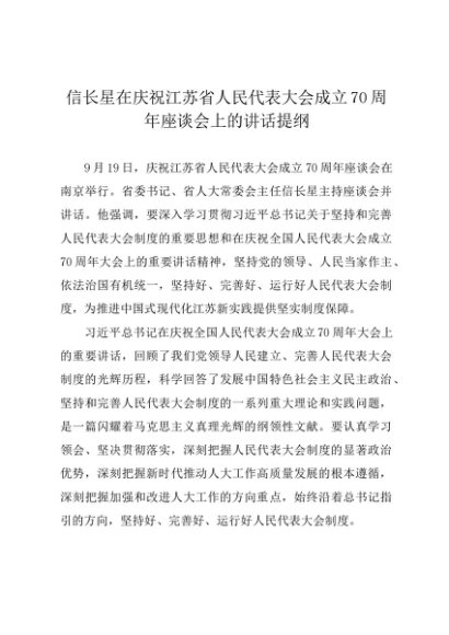 / 领导讲话:20240919信长星在庆祝江苏省人民代表大会成立70周年座谈会上的讲话提纲