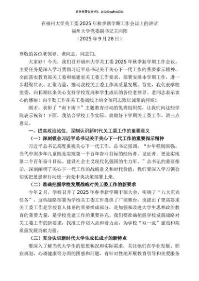 / 领导讲话:20251130福州大学党委副书记王向阳:在福州大学关工委2025年秋季新学期工作会议上的讲话