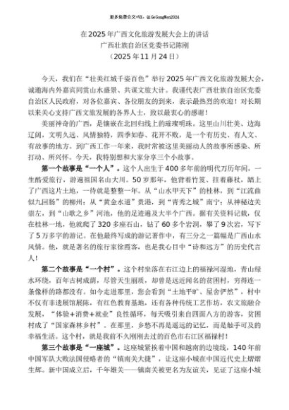 / 领导讲话:20251130广西壮族自治区党委书记陈刚:在2025年广西文化旅游发展大会上的讲话