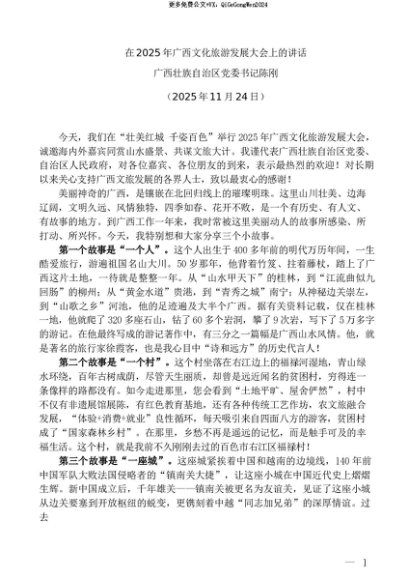 领导讲话:20251124在2025年广西文化旅游发展大会上的讲话——广西壮族自治区党委书记陈刚