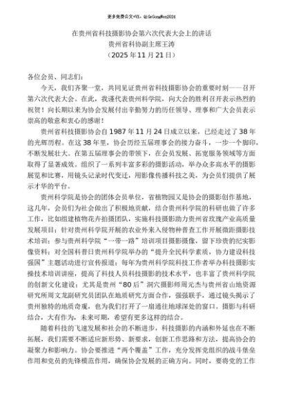 / 领导讲话:20251130贵州省科协副主席王涛:在贵州省科技摄影协会第六次代表大会上的讲话