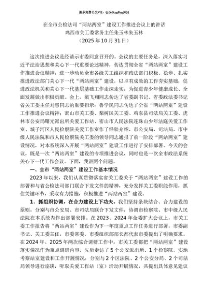/ 领导讲话:20251115鸡西市关工委常务主任朱玉林朱玉林:在全市公检法司“两站两室”建设工作推进会议上的讲话