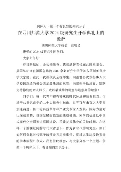/ 领导讲话:20240918在四川师范大学2024级研究生开学典礼上的致辞——四川师范大学校长