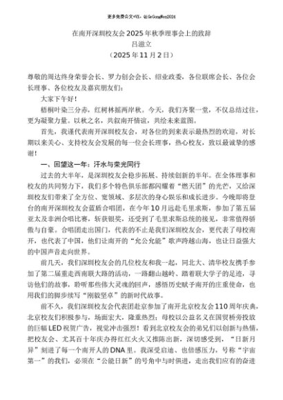 / 领导讲话:20251115吕滋立:在南开深圳校友会2025年秋季理事会上的致辞