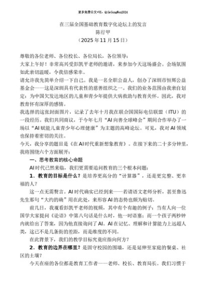 / 领导讲话:20251115陈行甲:在三届全国基础教育数字化论坛上的发言