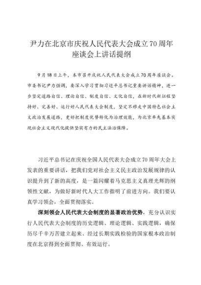 / 领导讲话:20240918尹力在北京市庆祝人民代表大会成立70周年座谈会上讲话提纲