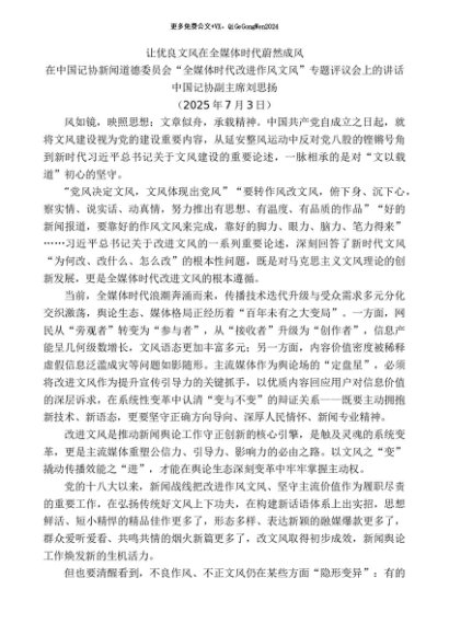 / 领导讲话:20251115中国记协副主席刘思扬:在中国记协新闻道德委员会“全媒体时代改进作风文风”专题评议会上的讲话