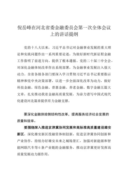 / 领导讲话:20240918倪岳峰在河北省委金融委员会第一次全体会议上的讲话提纲