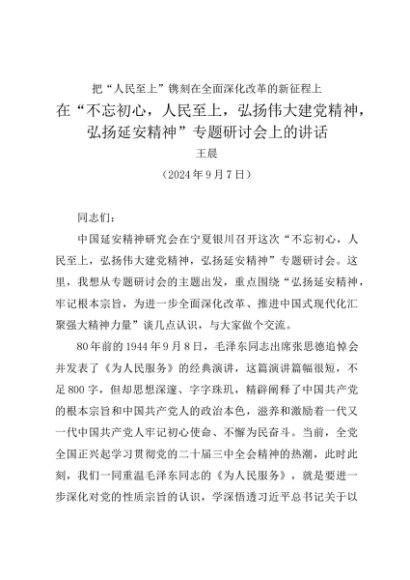 / 领导讲话:20240907在“不忘初心,人民至上,弘扬伟大建党精神,弘扬延安精神”专题研讨会上的讲话