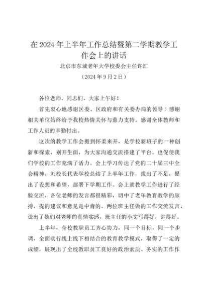 / 领导讲话:20240902在2024年上半年工作总结暨第二学期教学工作会上的讲话——北京市东城老年大学校委会主任许汇