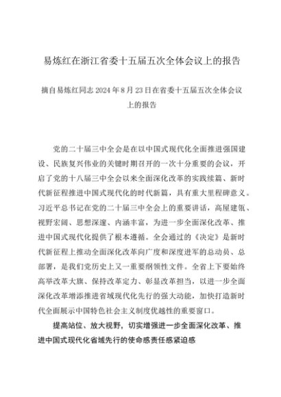 / 领导讲话:20240823易炼红在浙江省委十五届五次全体会议上的报告