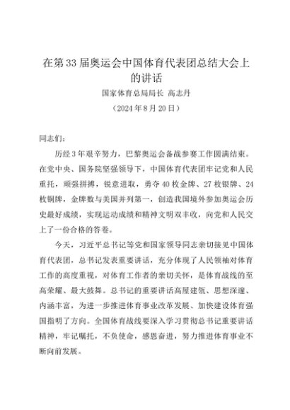 / 领导讲话:20240820在第33届奥运会中国体育代表团总结大会上的讲话——国家体育总局局长 高志丹(全文13000字)