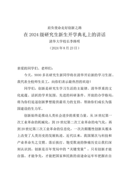 / 领导讲话:20240825在2024级研究生新生开学典礼上的讲话——清华大学校长李路明