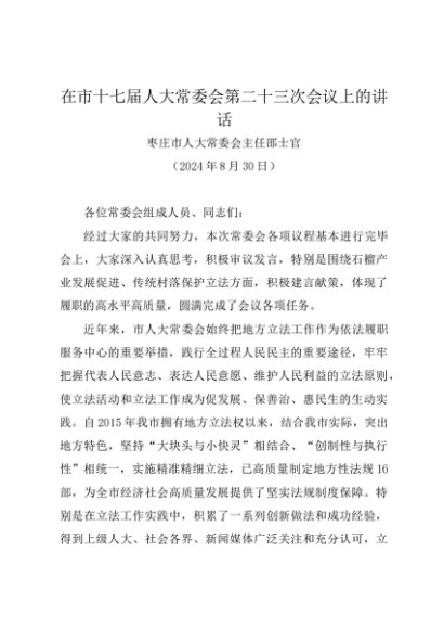 / 领导讲话:20240830在市十七届人大常委会第二十三次会议上的讲话——枣庄市人大常委会主任邵士官
