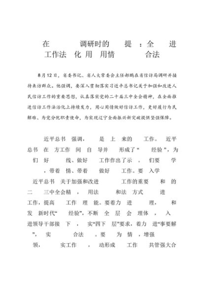 / 领导讲话:20240812郝鹏在省信访局调研时的讲话提纲:全面推进信访工作法治化 用心用情维护群众合法权益