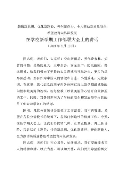 / 领导讲话:20240813在学校新学期工作部署大会上的讲话