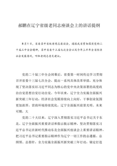 / 领导讲话:20240801郝鹏在辽宁省级老同志座谈会上的讲话提纲