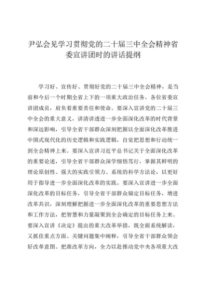 / 领导讲话:20240802尹弘会见学习贯彻党的二十届三中全会精神省委宣讲团时的讲话提纲