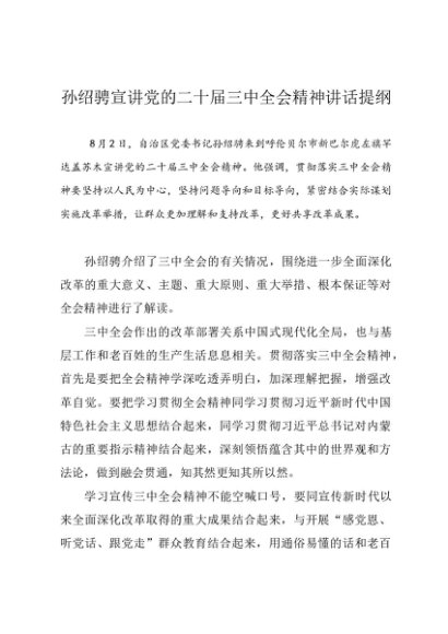 / 领导讲话:20240802孙绍骋宣讲党的二十届三中全会精神讲话提纲