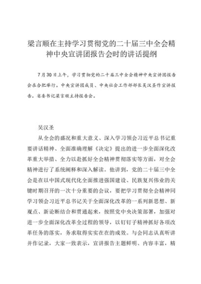 / 领导讲话:20240730梁言顺在主持学习贯彻党的二十届三中全会精神中央宣讲团报告会时的讲话提纲