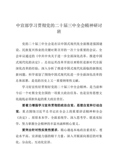 / 领导讲话:20240726中宣部学习贯彻党的二十届三中全会精神研讨班