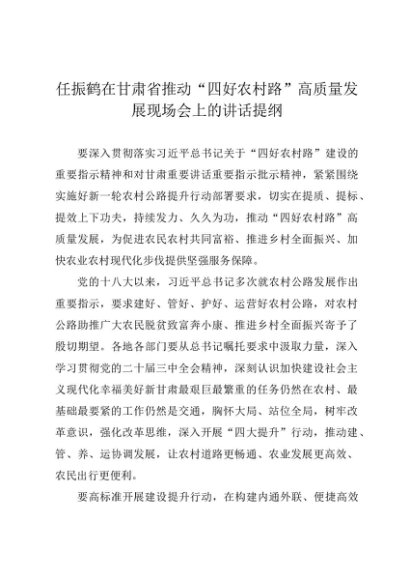 / 领导讲话:20240725任振鹤在甘肃省推动“四好农村路”高质量发展现场会上的讲话提纲